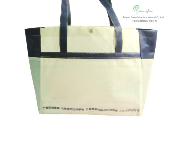 名稱:T型不織布袋 / 不織布環保袋 / 不織布購物袋 / 不織布提袋 / 不織布手提袋 材質:不織布 顏色:乳白+深藍 克數:100 g 尺吋:(H)高30cm,(W)寬36cm,(D)底寬12cm,無側邊 印刷:網版印/一色 (單面) 手提:外露長度60cm,寬2.5cm 配件:PE板、扣子 配件:側袋